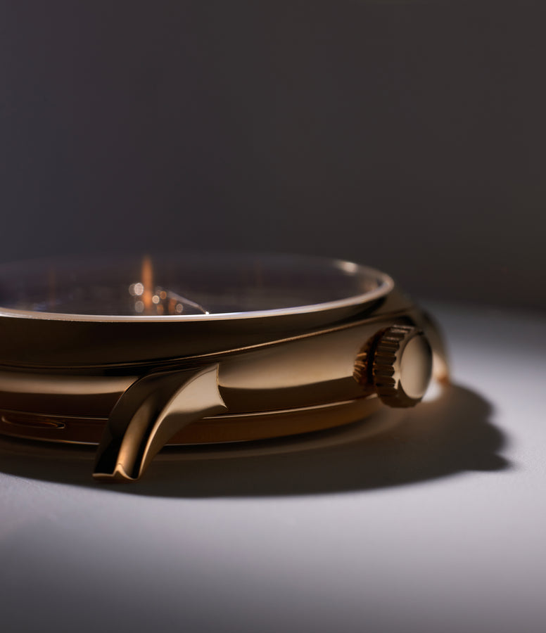 The ovoid bezel was given a concave form. However, to accommodate it without disrupting the classical profile, the midcase had to have an irregular shape – it dipped to meet the wider sections of the bezel, while rising in the flanks. It was a detail that would prove tricky to fabricate. The long, claw-like lugs were another aspect where Vichet’s design influence on Rexhepi appeared. Not only did they feature a gentle, stepped, almost Art Deco detail, their length meant that when the case was set down, only the tips of the lugs touched the surface, with the caseback hovering. At this time, the cases were still being fabricated by an external supplier.