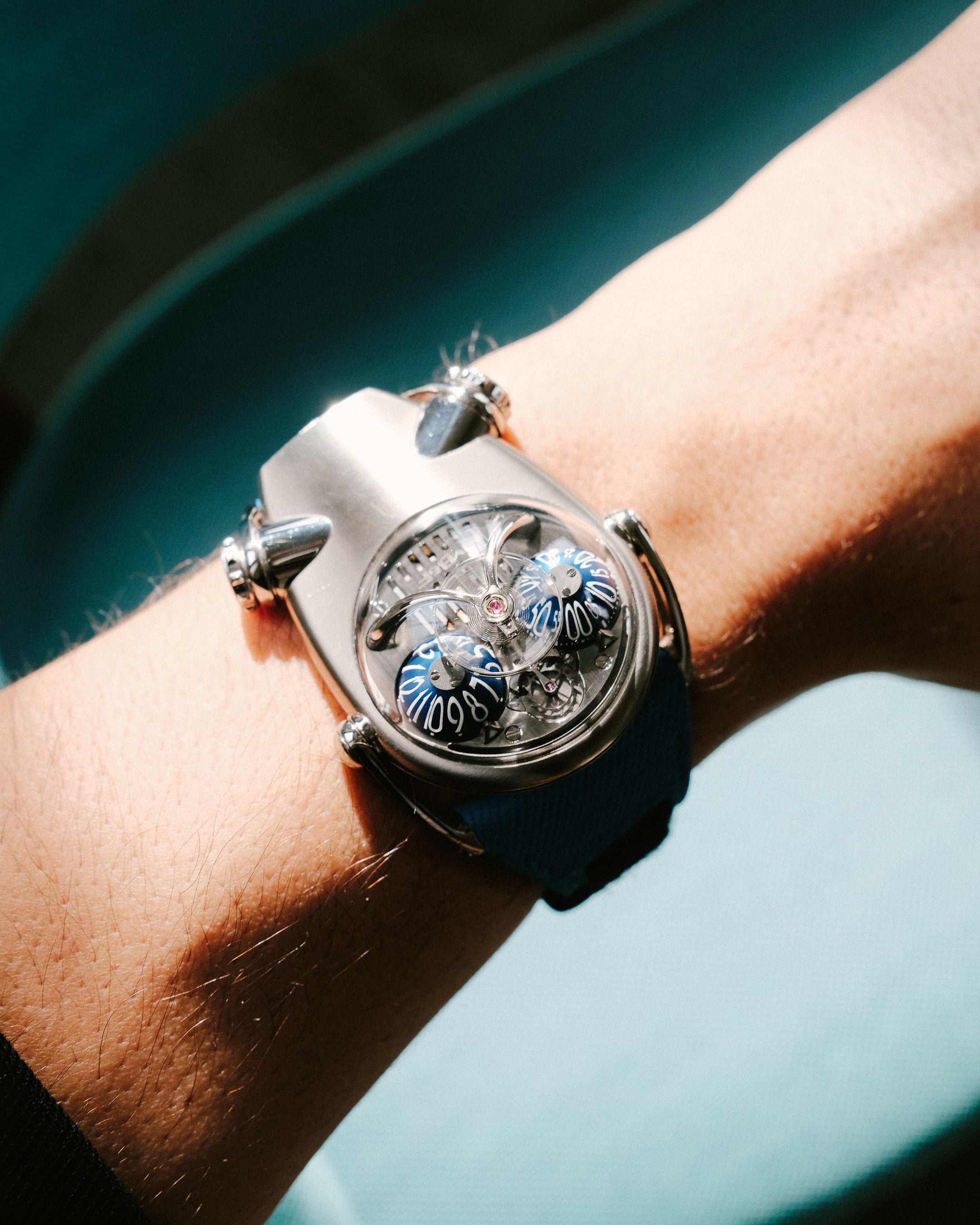 While travelling around the world over a period of three weeks I tried to convince retailers to follow me on my nutty idea. Amazingly, five of them agreed, which were Chronopassion, Westime, The Hour Glass, Seddiqi and Ghadah. Thinking back on it, I shudder because I had absolutely no backup plan. We ran into some serious difficulty when STT, the company which I had hired to engineer, manufacture and assemble the movements for the HM1, was sold very hastily in 2006. The brand who had acquired STT clearly had no interest in supplying products to third parties, and so the months following that brought MB&F incredibly close to bankruptcy.