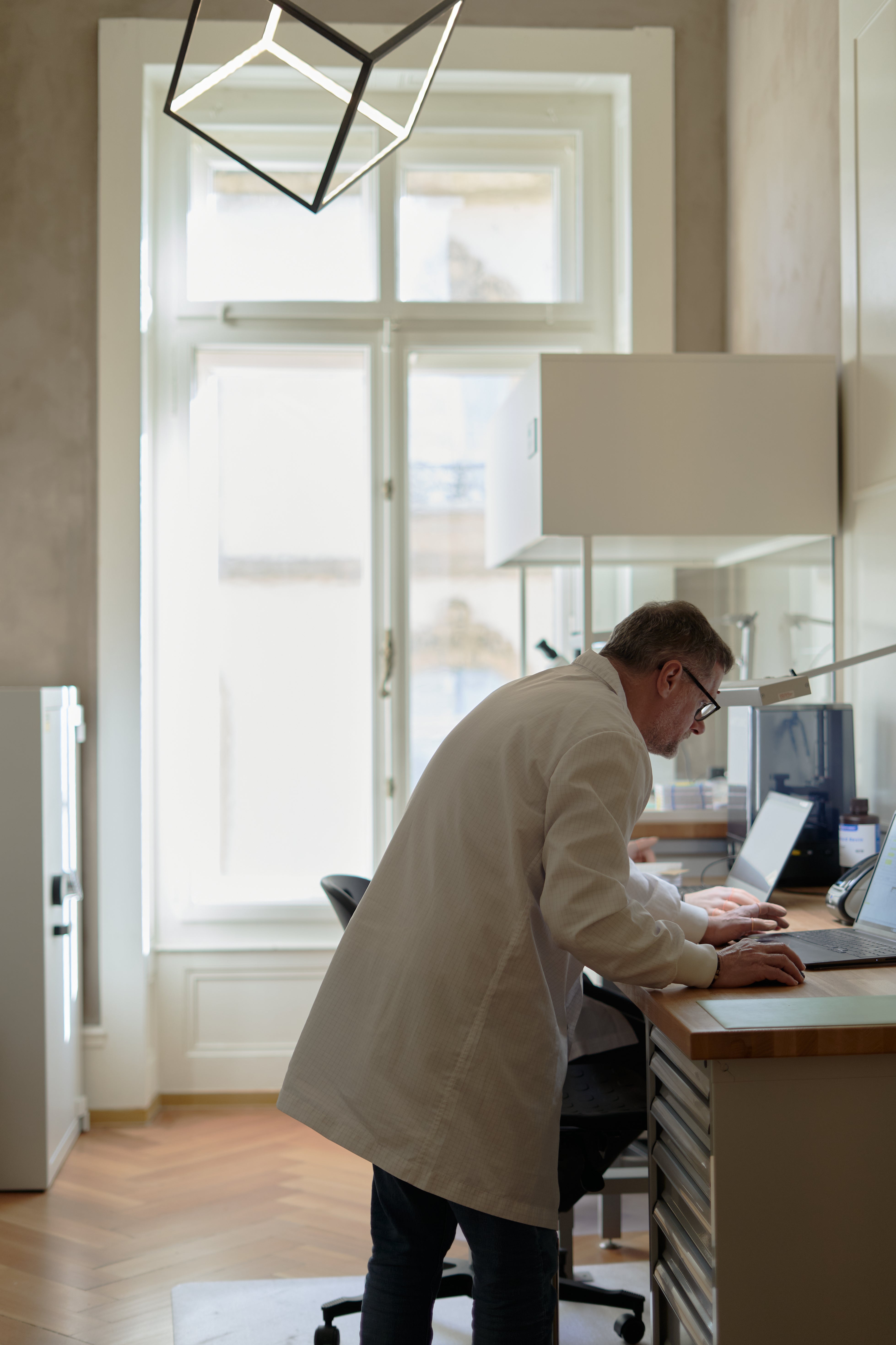 We arrive at Neuchâtel just as the sun begins to break through the clouds, bathing the rolling Swiss mountains in gold and turning the lake into a glittering pool. Krayon’s workshop is located just a stone’s throw from the waterfront, in a beautiful heritage building with a very traditional façade.