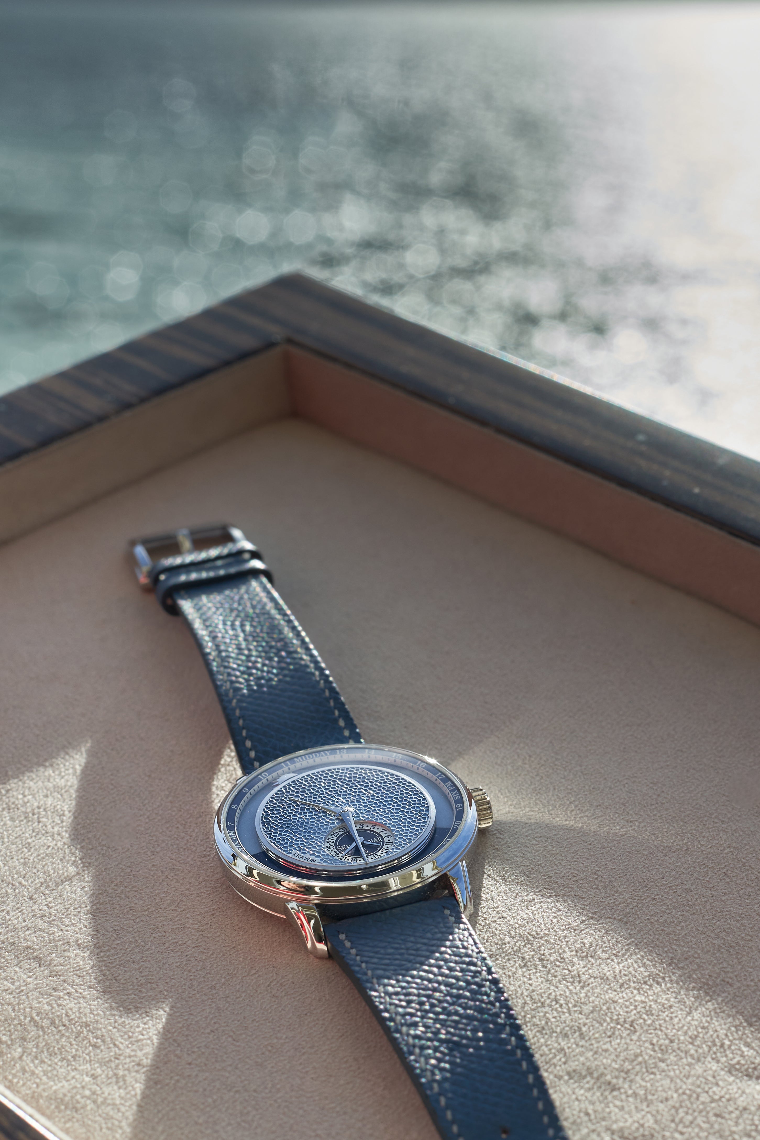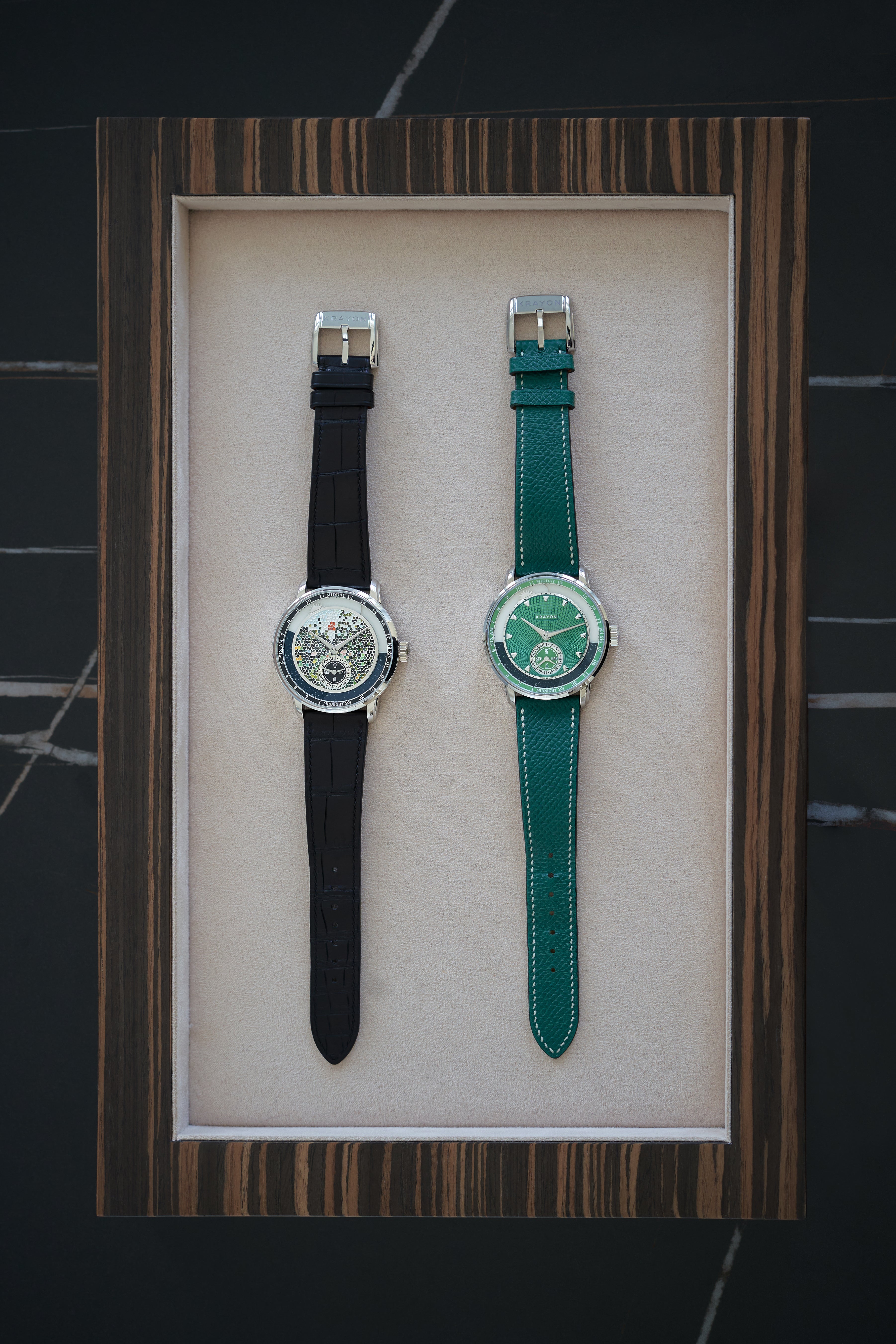 Krayon’s desire extends beyond creating something that is beautiful, but seeks to ensure that their watches are grounded in the practical. Over lunch, Maillat tells us about travelling to meet collectors and shares how they gathered user feedback for their first watch, the Everywhere. “We realised that the movement was too complex – to create, to service and for the wearer to use. So we took that information and created the Anywhere, which only requires a watchmaker’s adjustment to change the location.”