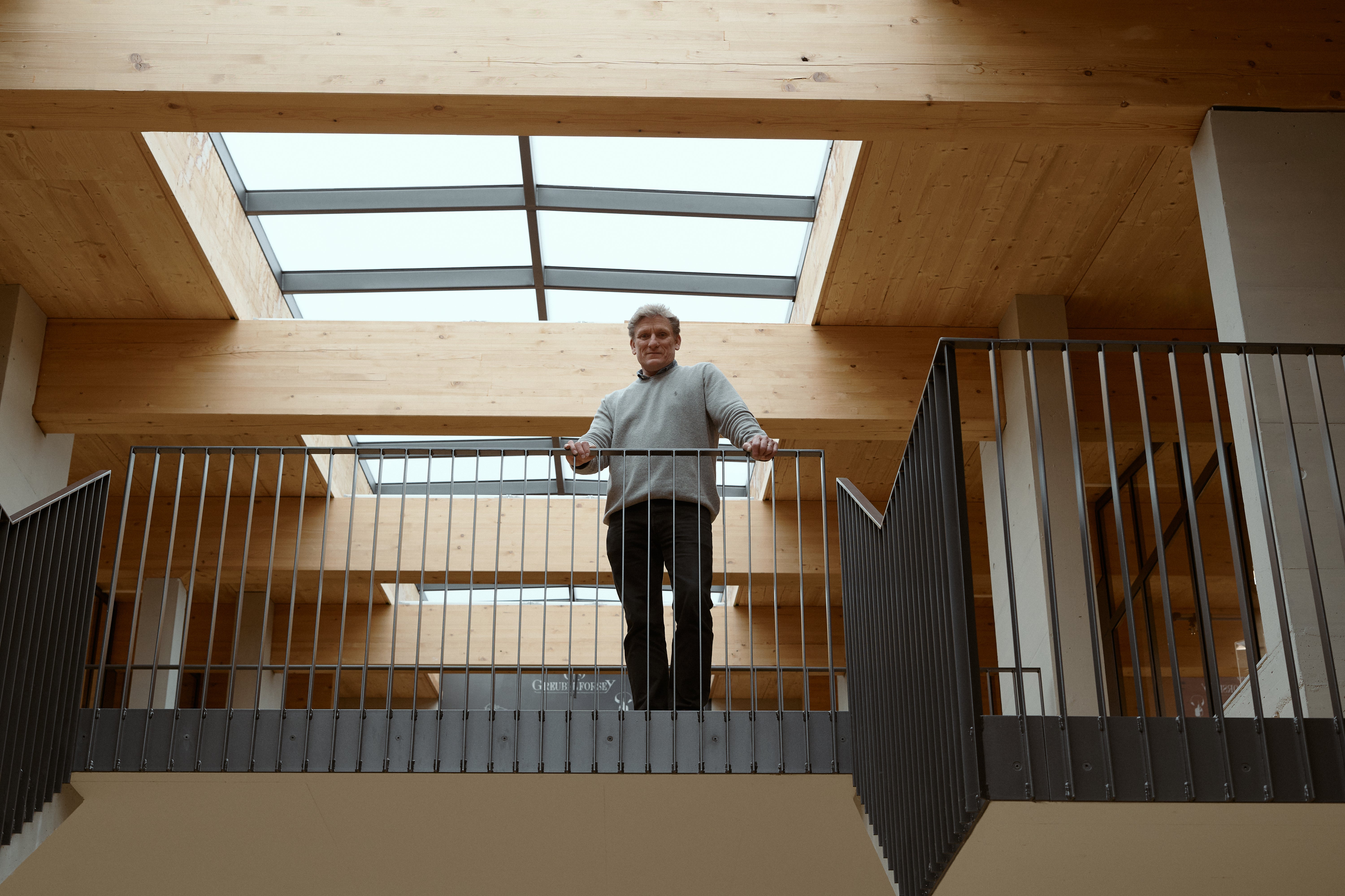 It is the entrance for visitors to the atelier – the only way into Greubel Forsey’s world. You have to step through 350 years of history and appreciate its textures and imperfections before getting to the polished glass-and-steel modern atelier. Forsey tells us the architect was inspired by the geological folds of the Jura mountains, creating the new atelier to appear as if birthed by the landscape.