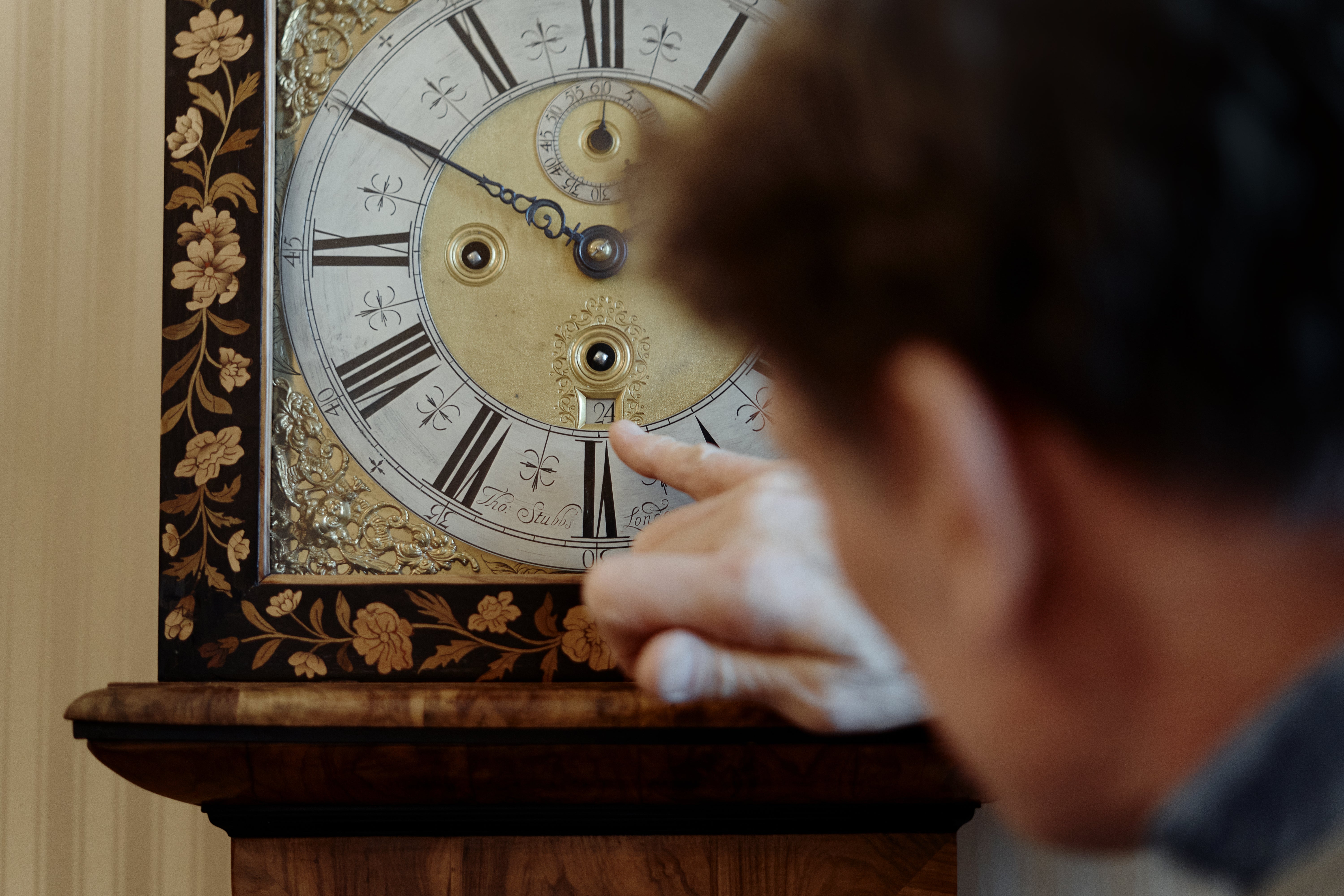 At the beginning of the 17th century, you had clocks with only an hour hand. This was for two reasons – clocks had gone from a bell strike to having an hour hand, because the precision was perhaps to one hour a day. Later in the 17th century, you also have a minute hand, as you start to get more precise – the pendulum immediately brought a level of precision. But an interesting detail that you don't often notice is just inside the Roman numerals, the chapter ring is divided into four, not the typical five minutes. That is a hangover from when you just had hour hands showing the quarter of the hour. Interesting, isn’t it?