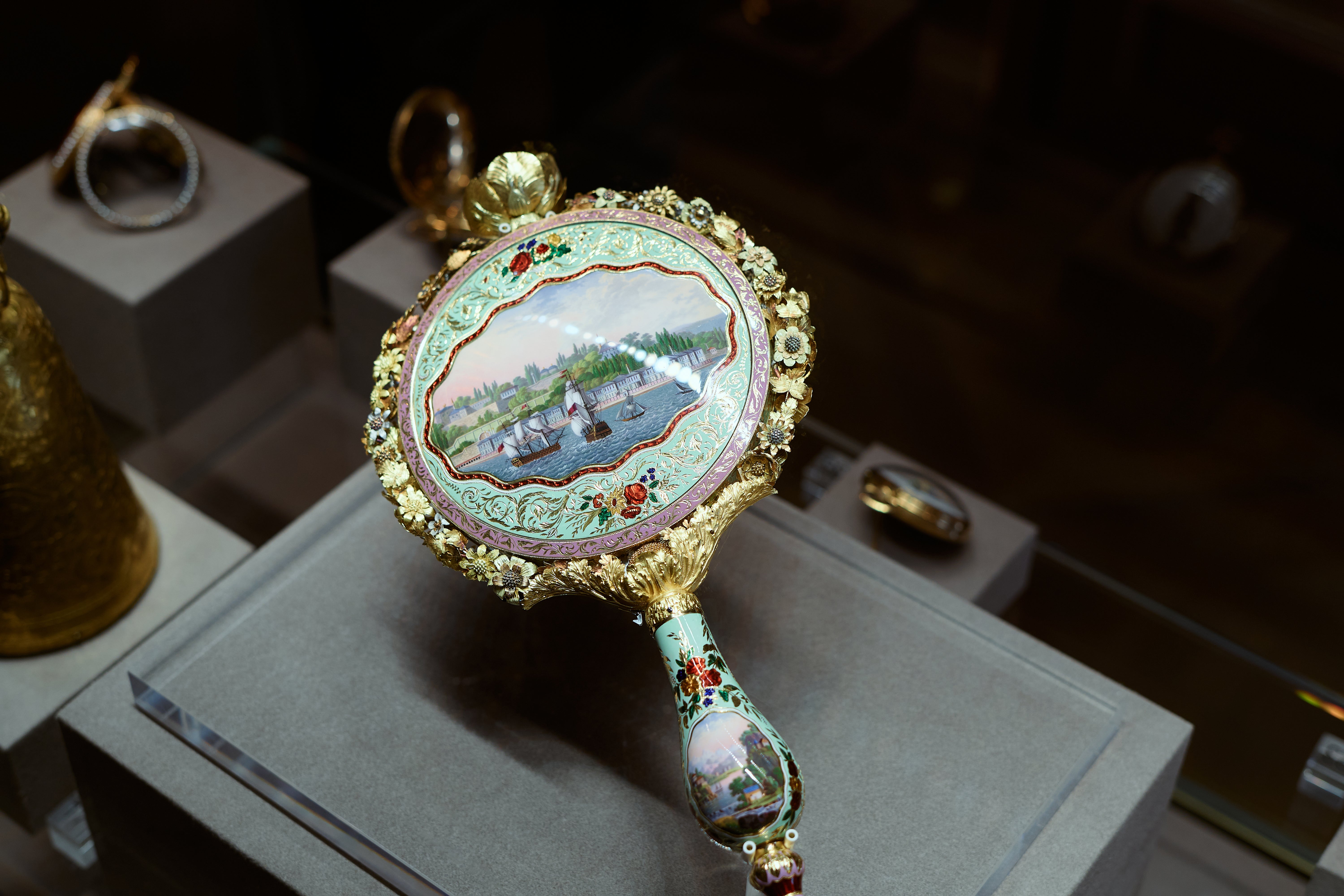 Forsey is most taken with a beautiful hand mirror, its vibrant adornment with inlay and enamel work hiding complex mechanics. “At the top you have this tiny, tiny singing bird enclosed within a flower,” he says. “Normally the petals are closed. Then the petals open, and the bird sings and flaps its wings and moves its beak and tail. This is just incredible when you think that you have the mirror, that isn’t so thick and you have to get the energy from the handle, where the mechanism lives, up to the bird to operate the different functions.”His sense of history is robust. Moving from one era to another, Forsey is quick to find his bearings and share anecdotes and details that bring that period to life. Being surrounded by it at the Château des Monts perhaps causes him to reflect on his own contribution to this unbroken chain of history.