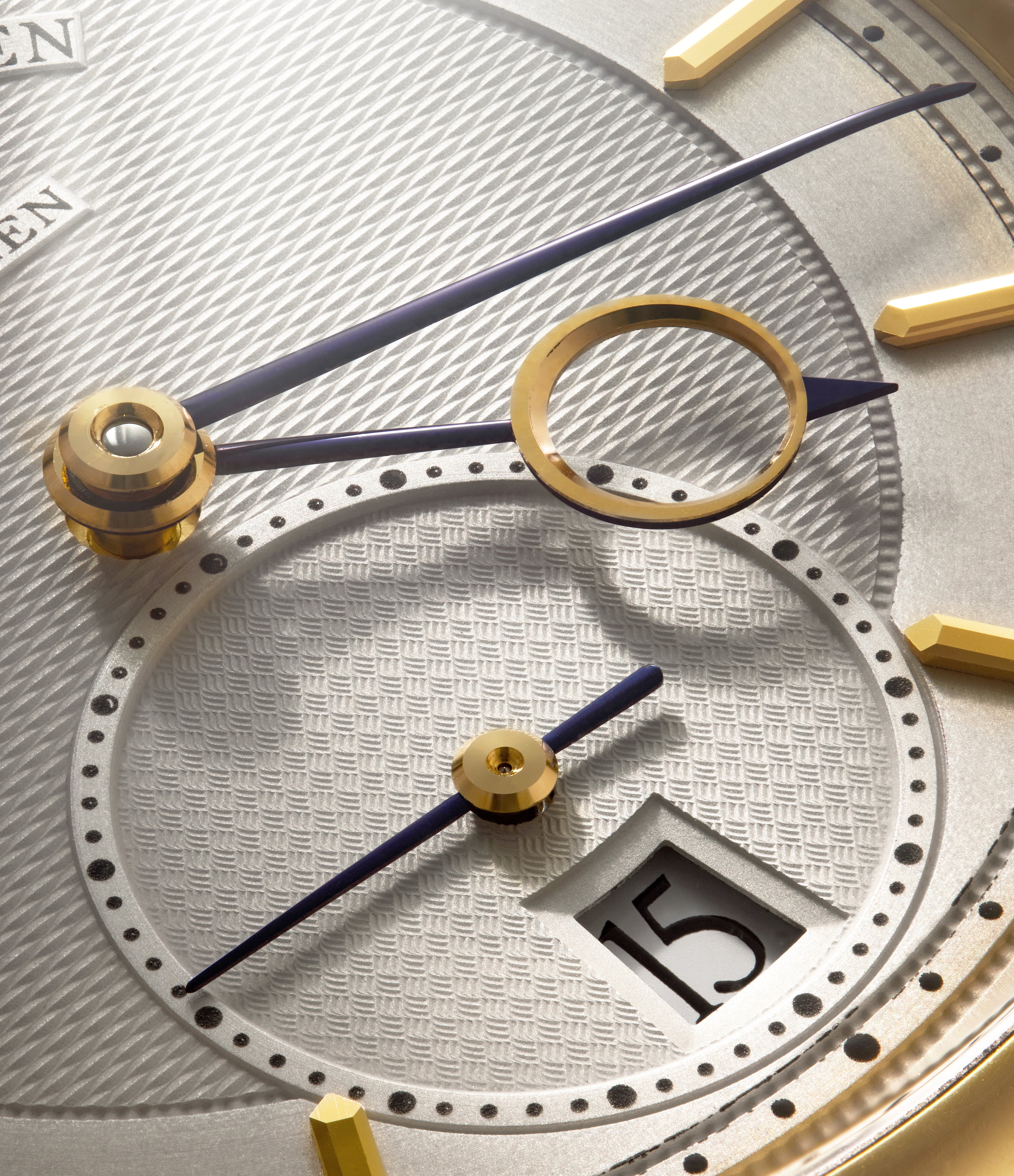 The second was the 20-piece Japan Edition watch with an eggshell grenage dial and applied Breguet Arabic numerals. This finish was achieved by brushing the dial with acids and powdered metals, finally coating it with mercury. This created a lightly textured yet smooth finish.