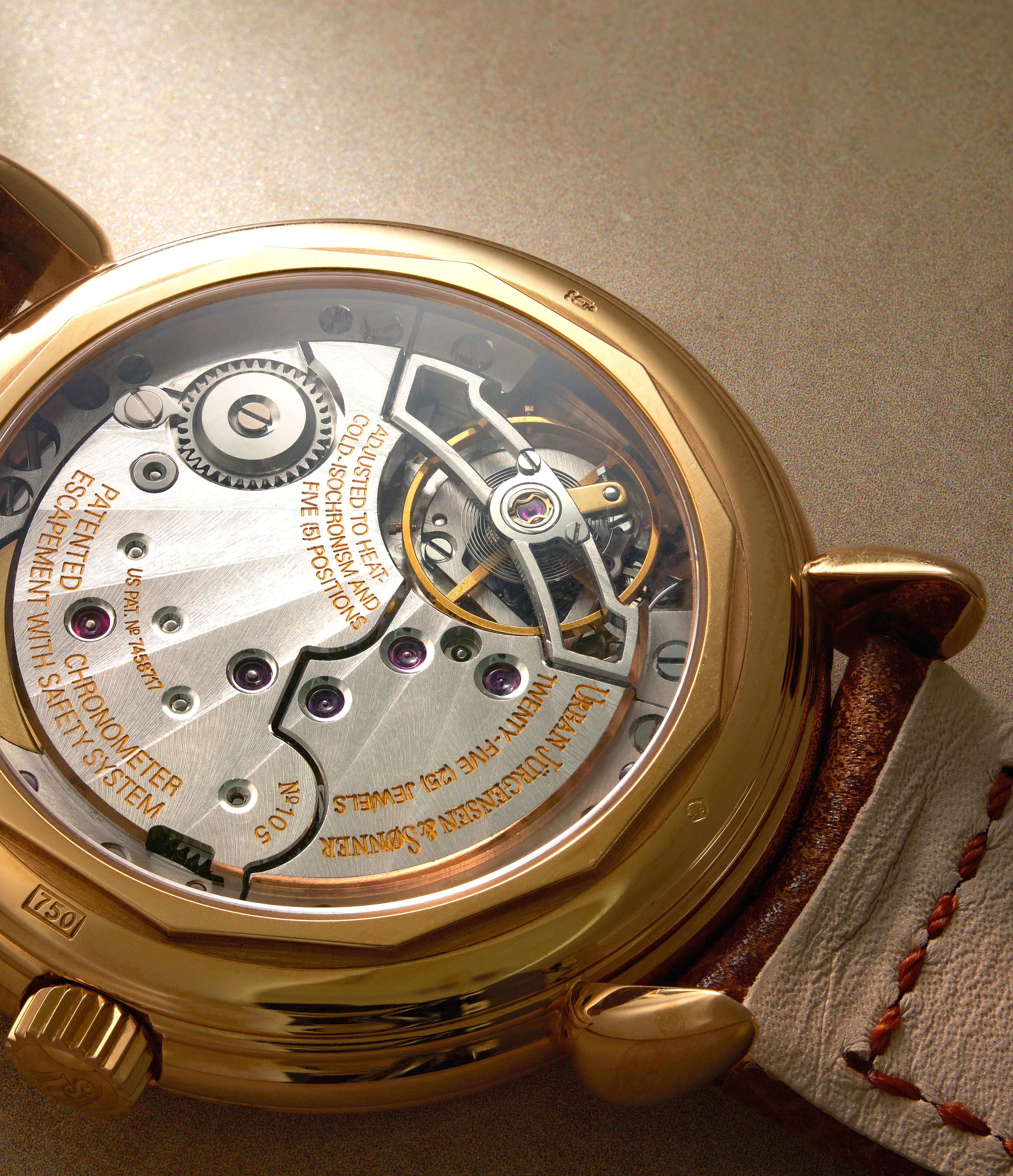 Says Crott, "On Kari's recommendation, I tried to recruit watchmakers with experience with detent escapements. I engaged Richard Daners, the famous watchmaker of Gübelin as well as two other renowned watchmakers Marion Müller and Bernhard Zwinz. Aside from other developments, we changed the shape of the escape wheel and [created] a shorter detent. This resulted in two prototypes during my time – detent version 2 watch with movement number 105 in a rose gold case and detent version 3 with number 129 in a platinum case."