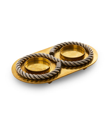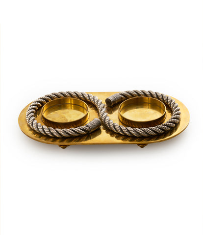 An elegant accompaniment to dinner and drinks, this tray can be used to display a duo of slim wine bottles, glasses or as a candle holder. Beautifully crafted by Parisian silversmiths Ravinet d'Enfert, the rope detailing bears startling detail and this is sure to be a conversation starter at any gathering.